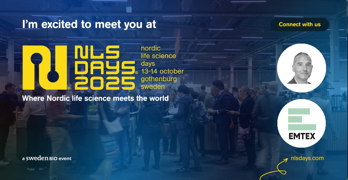 Emtex Life Science will take part in the NLS Event . A live and on-site event held in Gothenburg/Sweden. Date:13-14/10/2025. Have a chat with Matthias Franssen to discover our great Medical Writing Services.
